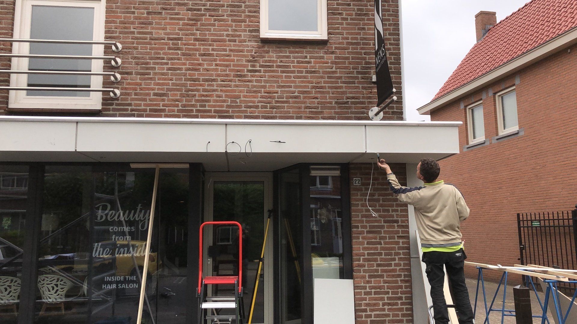 Overzicht van een project waarbij we de buitenluifel van Haarstudio Nens mochten vervangen.